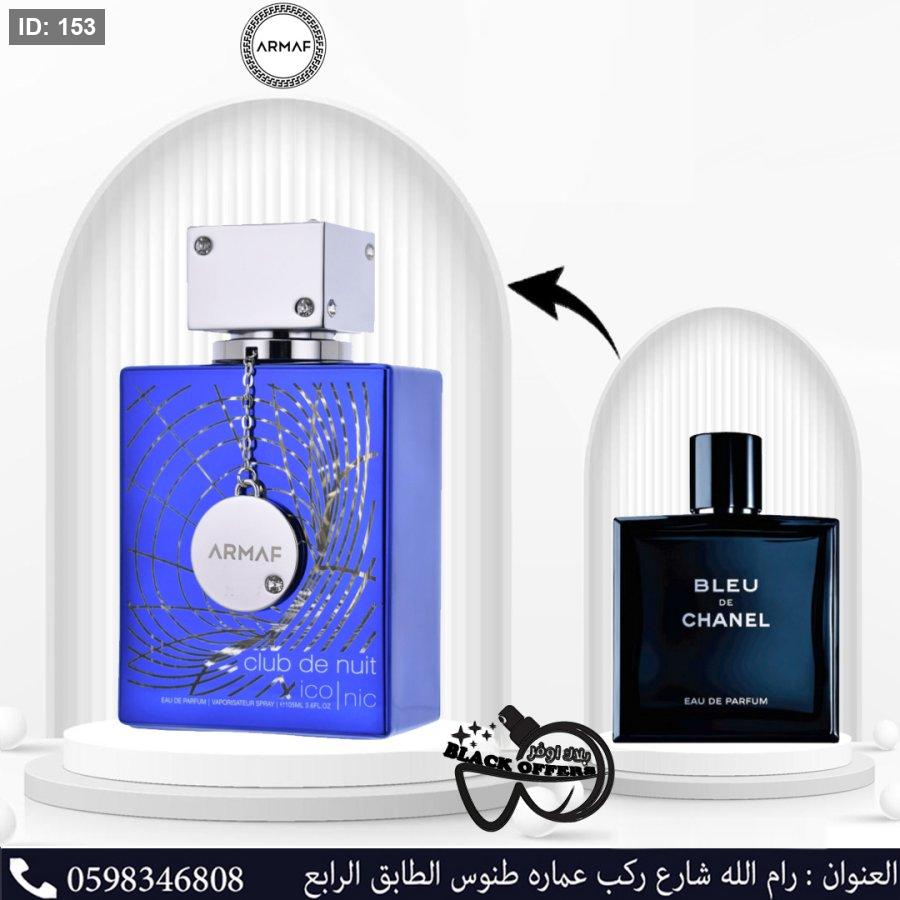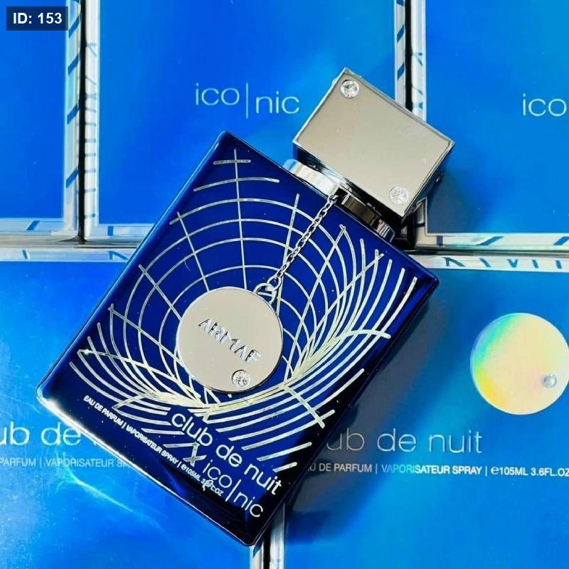 عطر رجالي أرماف كلاب دي نوي بلو أيكونيك بحجم 105 مل برائحة جريب فروت، نعناع، فلفل وردي، ليمون، كزبرة،الزنجبيل، جوزة الطيب، البطيخ، الياسمين ، البخور، العنبر، الأرز، خشب الصندل، الأخشاب، اللابدانوم، الباتشولي.