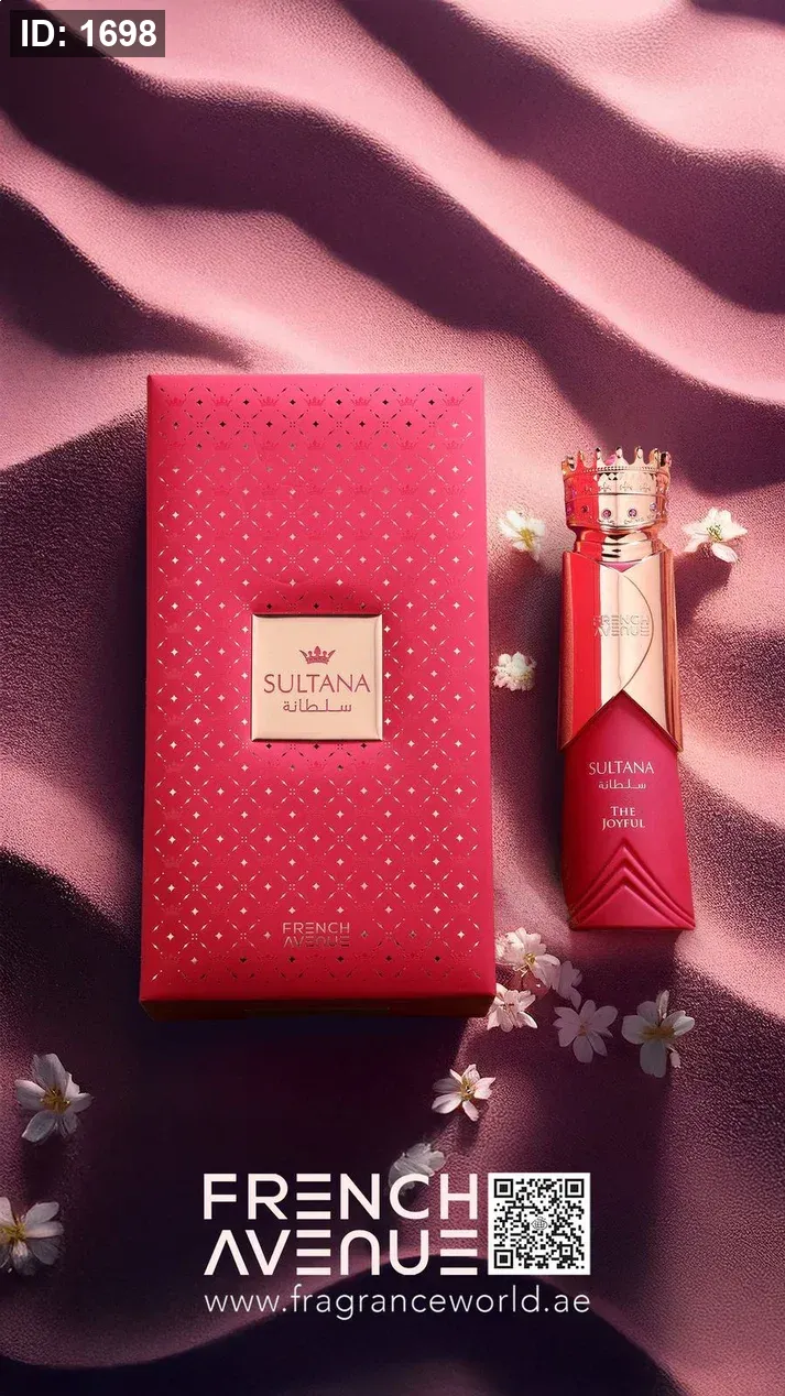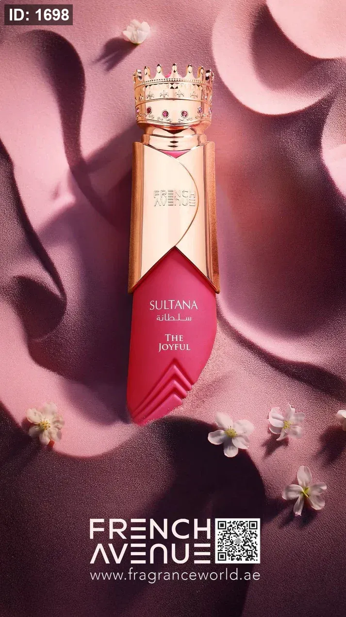 عطر سلطانة للنساء من French Avenue النوتات العطرية: يفتتح العطر بنفحة دافئة من الأزهار والحمضيات الغريبة، ثم ينتقل برشاقة إلى قلب من الورد المخملي والياسمين والعنبر. تستقر قاعدته في نفحات الأخشاب الغنية والمسك الناعم، تاركاً وراءه أثراً من الرقي الحسي.
