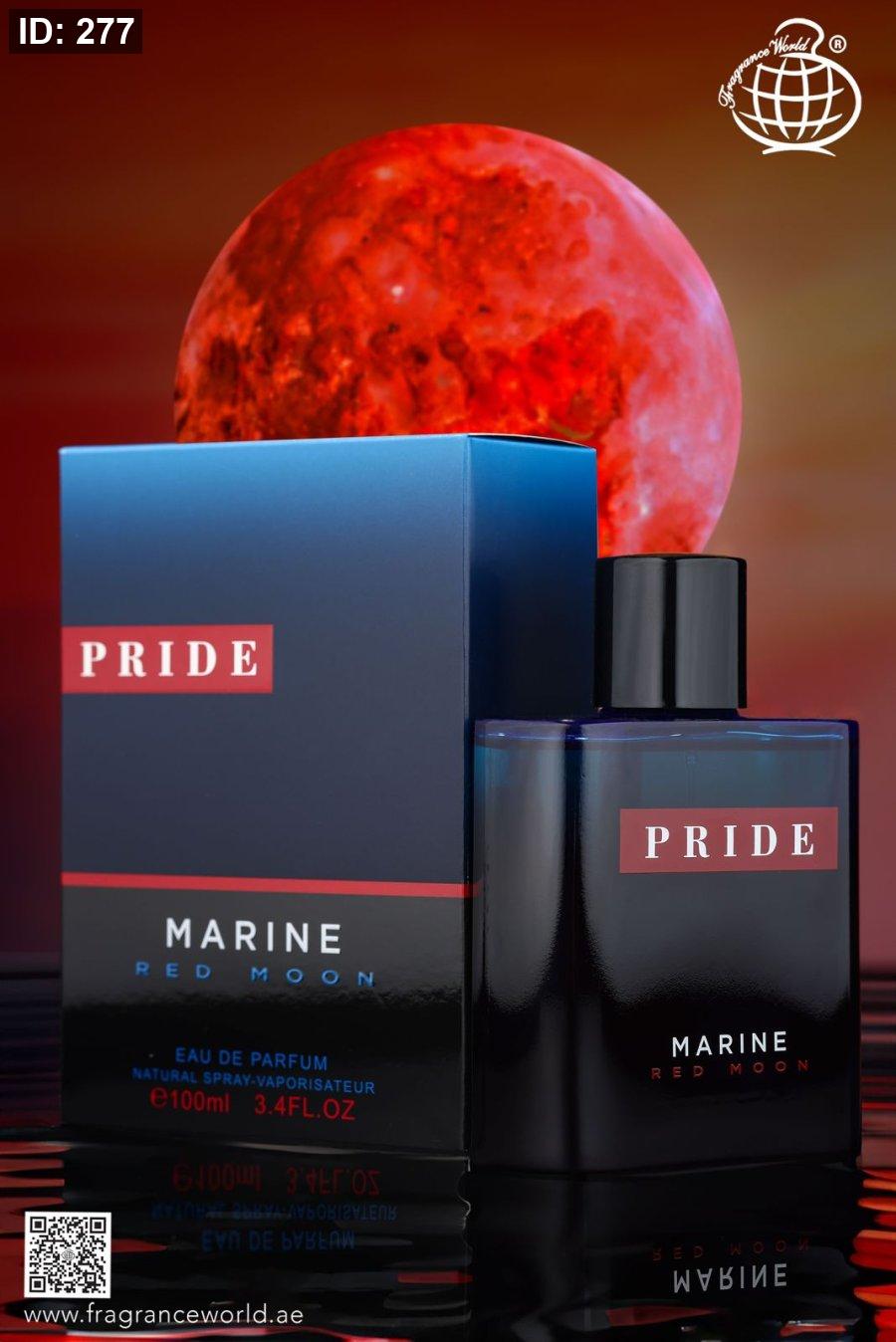 Discover a bold and refreshing scent with Pride Red Moon Marine by Fragrance World, inspired by Prada Luna Rossa Ocean.